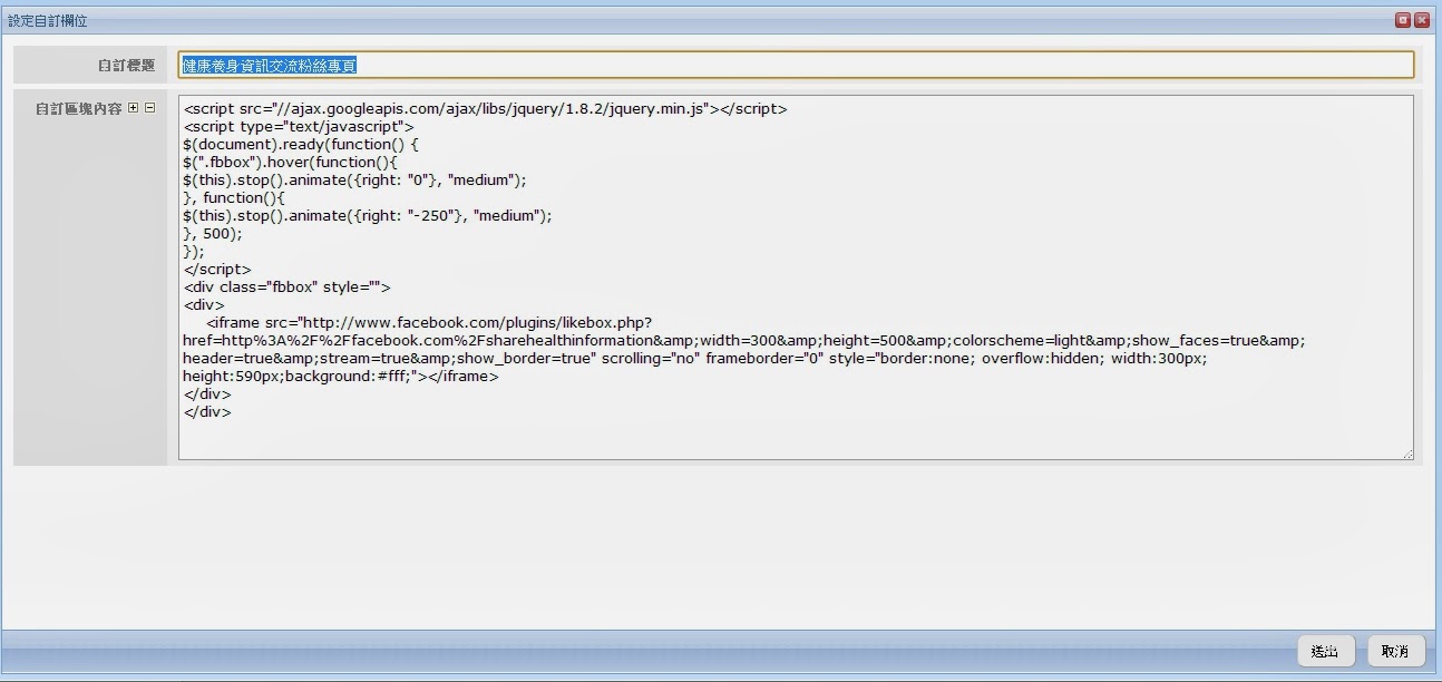 痞客邦pixnet部落格設定側邊出現浮動動態臉書facebook的likebox教學